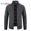 Cozy up Herren Strickjacke mit kleinem Stehkragen und dickem Samt