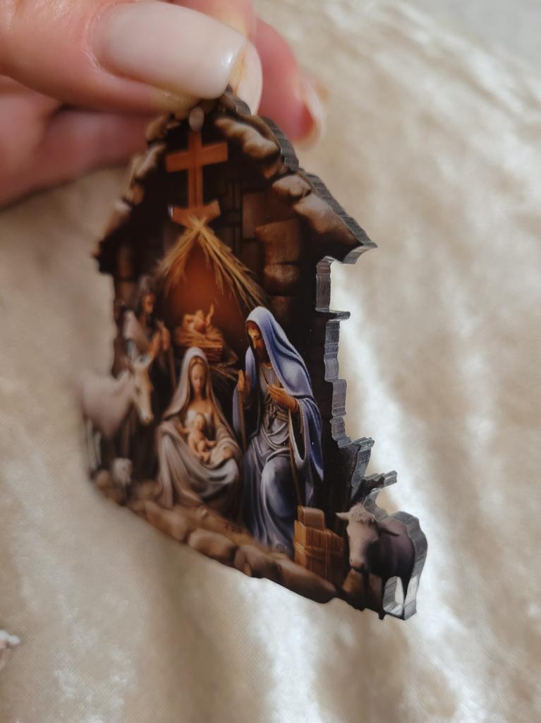 Weihnachtsanhänger, Ornament, Anhänger mit Gebetsszene und Jesus-Familie, leuchtend farbiger Anhänger mit religiösem Symbol für Zuhause und Auto