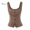 Diese Weste ist aus weicher und bequemer Polyesterfaser gefertigt und verfügt über ein Riemendesign im Retro-Stil sowie eine taillenbetonte Silhouette, die Ihre Kurven wunderschön betont.