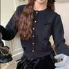 Neuer Herbst-Strickpullover mit Schleife und Spitzendesign, kurze und zarte Strickjacke für Damen