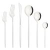 Paket beinhaltet: 1 x Menümesser, 1 x Gabel, 1 x Dessertgabel, 1 x Esslöffel, 1 x Dessertlöffel, 1 x Teelöffel.