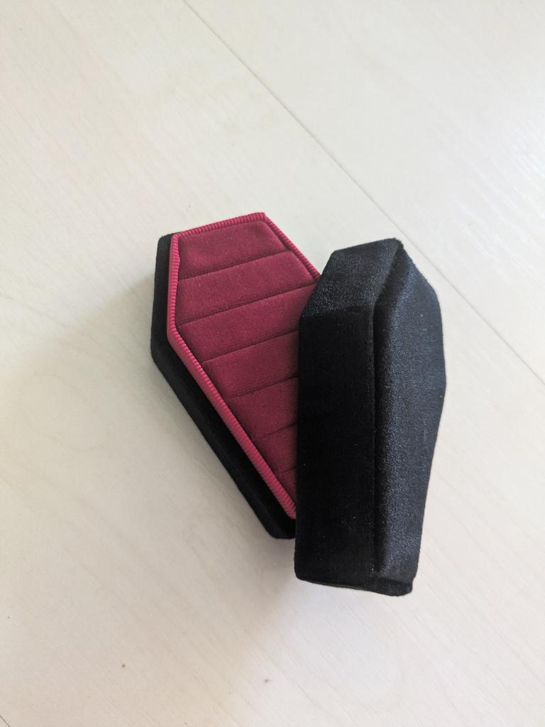 Schmuckschatulle in Sargform, tragbare Schmuckschatulle, Halsketten-/Ohrring-Vitrine, Ringhalter, Schmuckschatulle