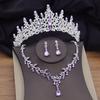 Wunderschöne Lila Kristall Brautschmucksets für Frauen Tiaras Ohrringe Halsketten Set Hochzeitskrone Schmuckset Mode