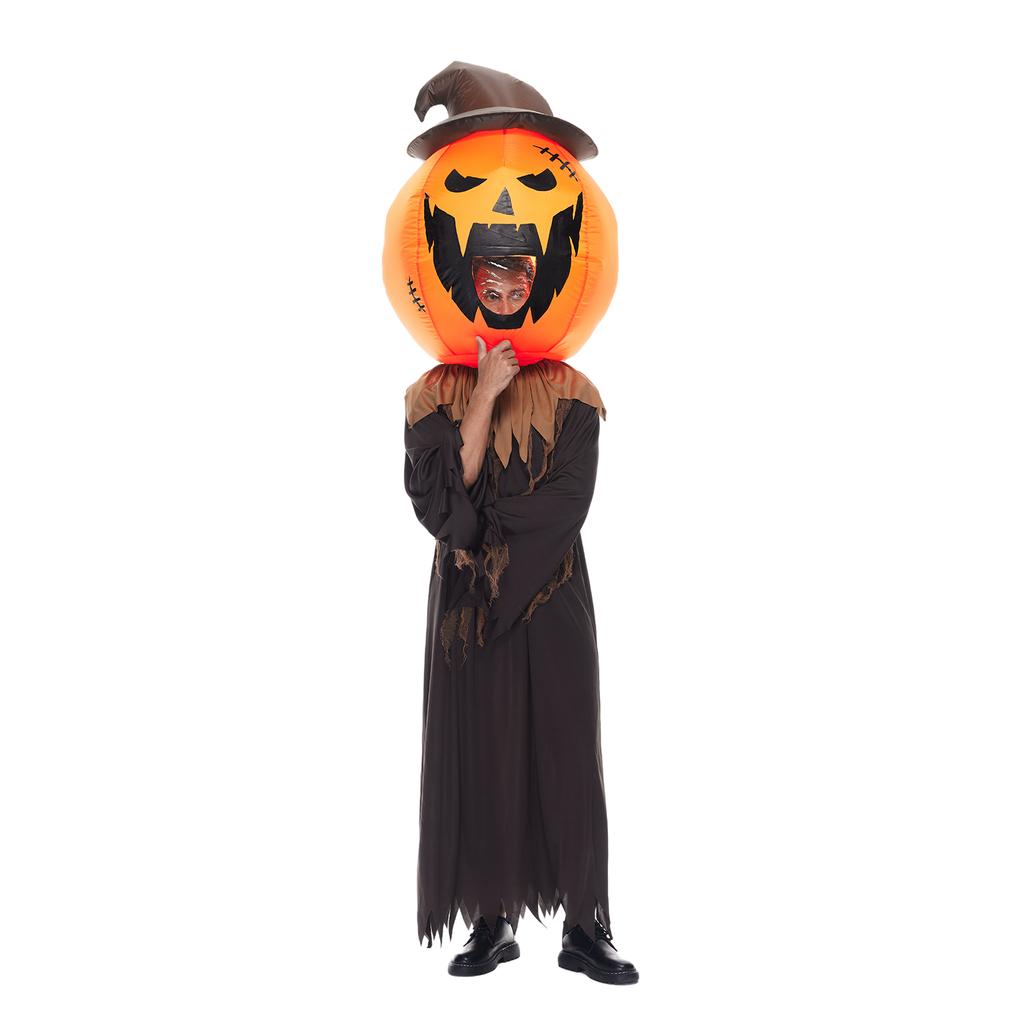 Aufblasbares Kürbiskostüm für Erwachsene, zum Aufblasen von Halloween, beängstigend, böser Kürbiskopf, Zaubereranzug, Robenset