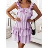 S-XXL New Summer Women's Solid Color Sling Stitching Double Layer Ruffle Dress Long Dress