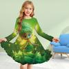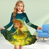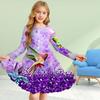 Mädchen Casual 3D Druck Blau Elf Rundhals Langarm Kleid Kind Prinzessin Kleid