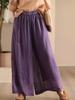 Johnature Damen Vintage Hose mit weitem Bein, einfarbig, Sommerhose mit elastischer Taille, lockere Freizeithose