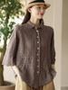 Johnature Damen Vintage Print Blumenhemden Stickerei Einfarbige Blusen Sommer Knopf Halbarmhemden