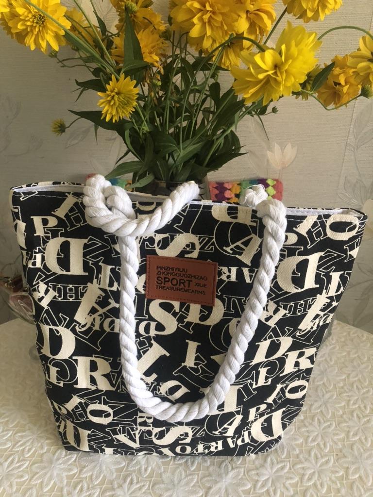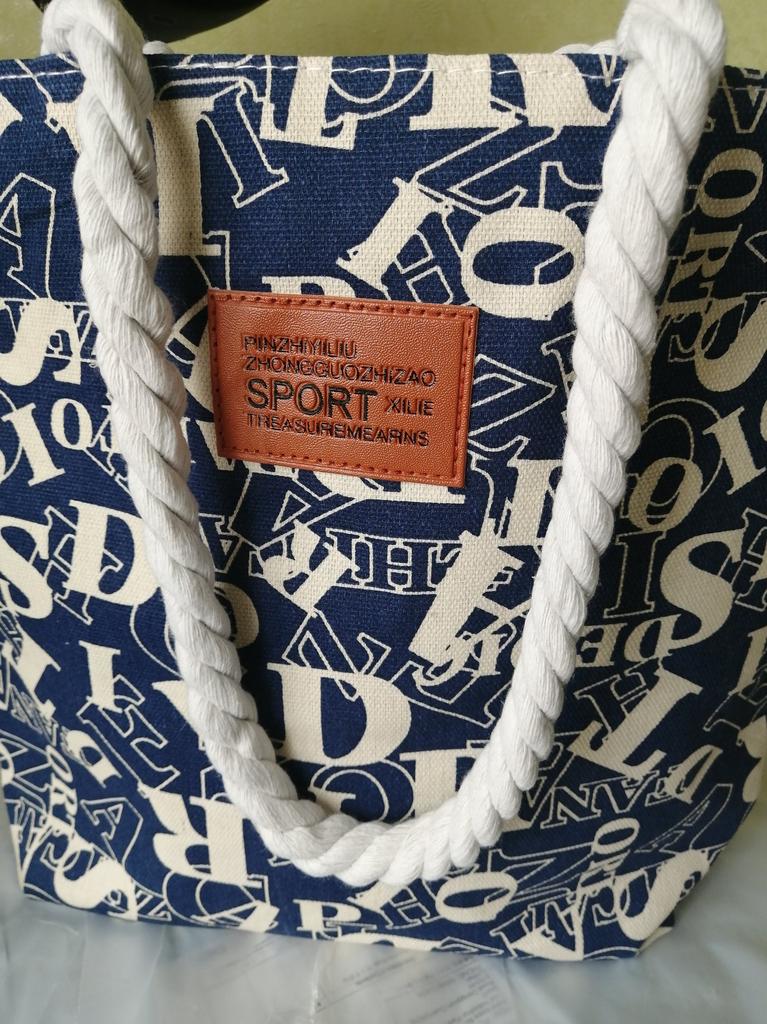 Die Handtasche ist sehr bequem, aus Baumwolle, wunderschön, sowohl für einen Spaziergang als auch für den Strand.