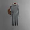 Herbst Winter Lazy Wind Loose O-Neck Pullover Kleid Damen Langarm Strick Breiter Rücken Aushöhlen Kleider