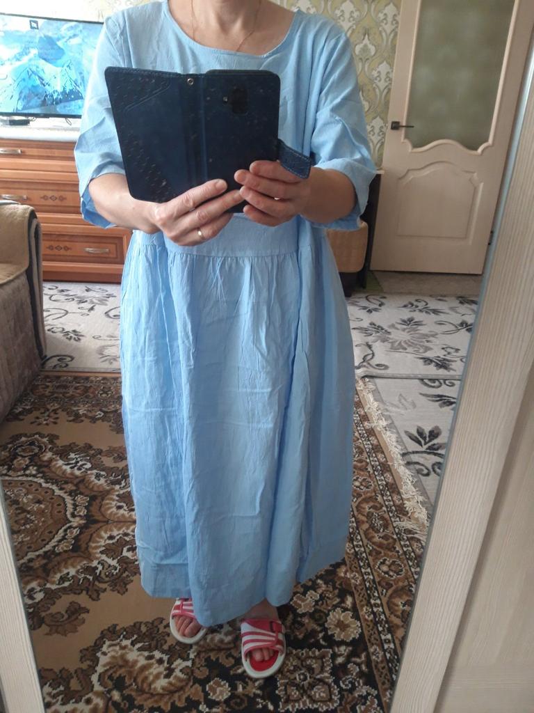 Super! Das Kleid hat perfekt gepasst, die Größentabelle stimmte. Es gefällt mir sehr, und der Stoff ist gut - er ist dicht genug, um nicht durchzuscheinen, und leicht genug, damit es nicht heiß wird, und angenehm auf der Haut, fühlt sich an wie Baumwolle. Ich bestelle jetzt das gleiche Kleid für meine Mutter in einer anderen Farbe.