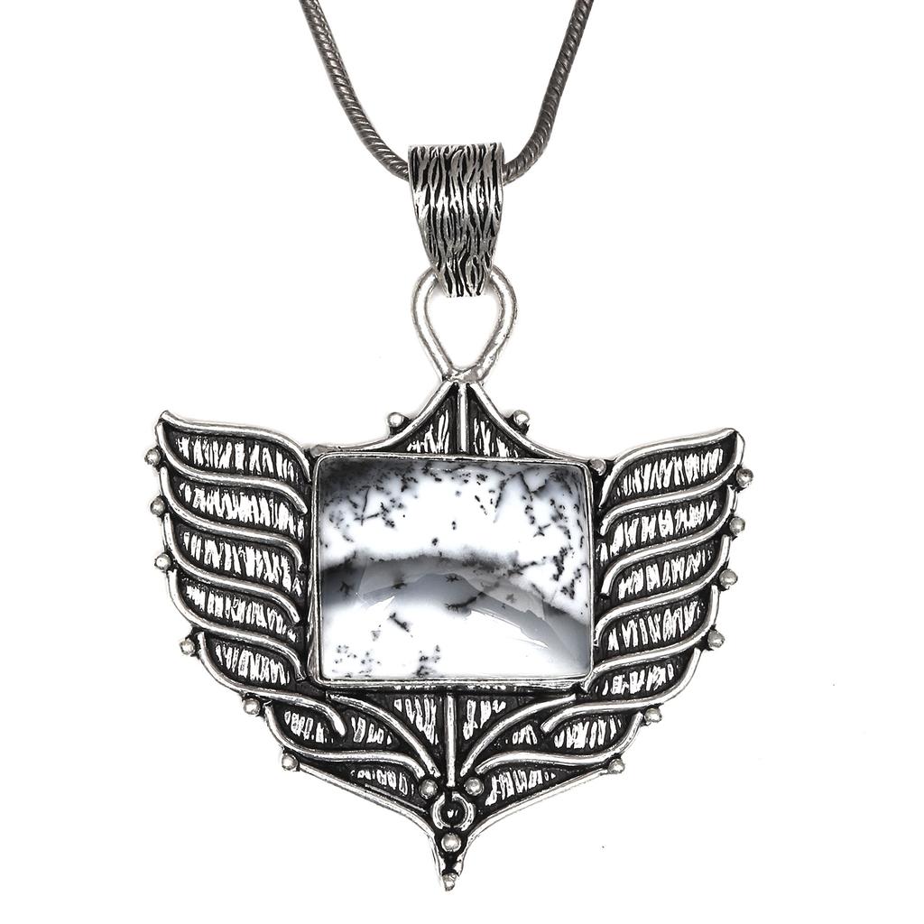 Opal Pendant Gemstone Silver 2.5" Jewelry Dendritic Handmade Ethnic