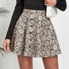 IHUASU Damen Einfarbiger Cord-Halbkörperrock für Herbst und Winter, modisch, süß, einreihig mit Knöpfen, hohe Taille, Regenschirmrock