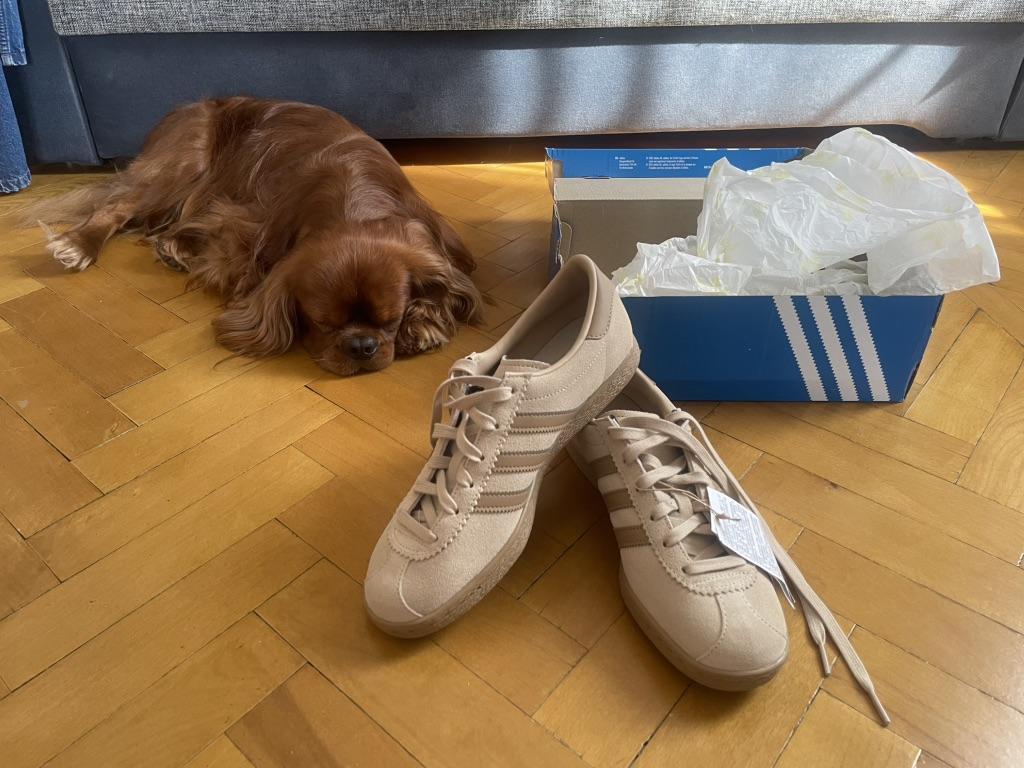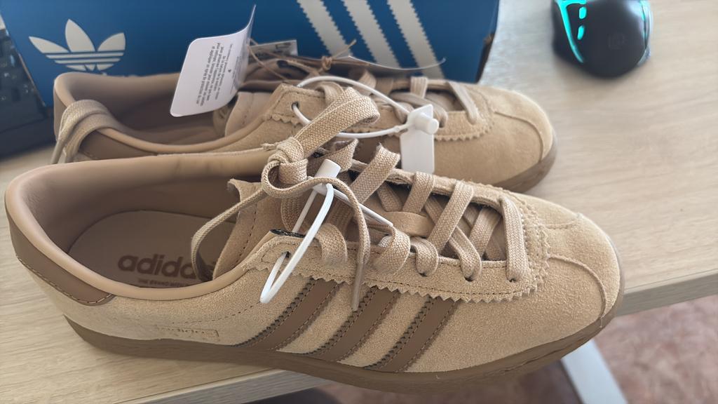 Die Größe hat perfekt gepasst. Ich trage normalerweise 40.5. Optisch ist es ein Original-Adidas.