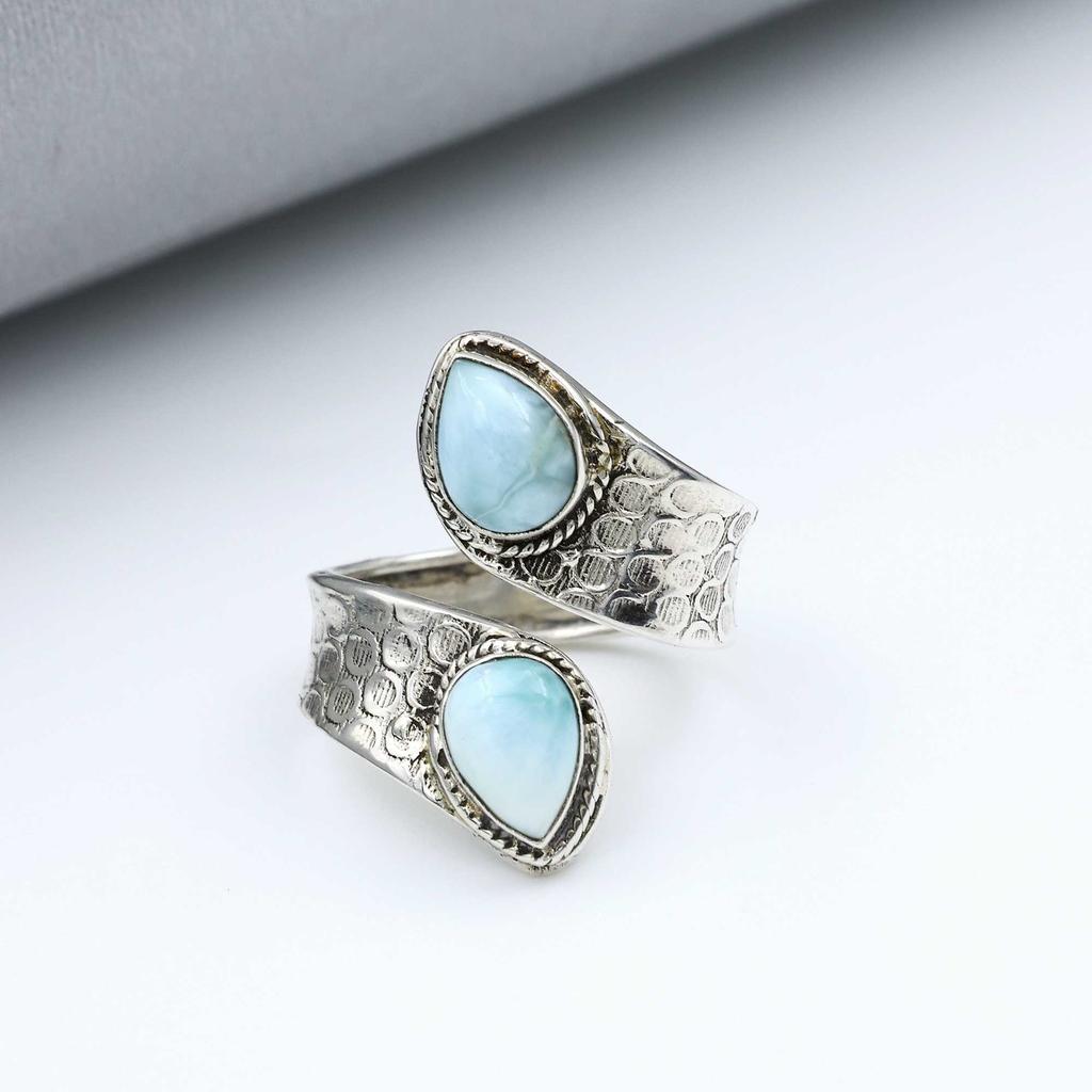 925 Sterling Silber Natürlicher Larimar Edelstein Geburtsstein Ring, Statement Ring, Böhmischer Ring