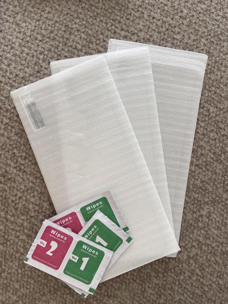 kam in Schutzschaum, aber ohne Reinigungstücher, das Glas selbst ist etwas trüb, Schutzfolie nur auf einer Seite (mit der es auf den Bildschirm geklebt werden muss)