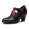 Johnature Echtes Leder Ausgehöhlte Dicker Absatz Spitze High Heels Retro Pumps Handbemalte Flache Damenschuhe