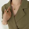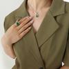 Französischer neuer neutraler Stil, personalisierte Mode, Titanstahl-Zugring, grüner Zirkon, eingelegte Halskette und Ohrringe, Schmuckset