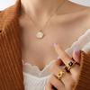 French Wind Choker White Sea Shell Moon Pendant Round Brand Necklace Titanium Steel Plated 18 Gold Women Do Not Fade Jewelry P156