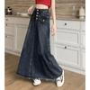 Herbst und Winter Damen Übergröße Jeansrock Sub Mittellanger Rock Schnalle Raw Edge A-Linienrock