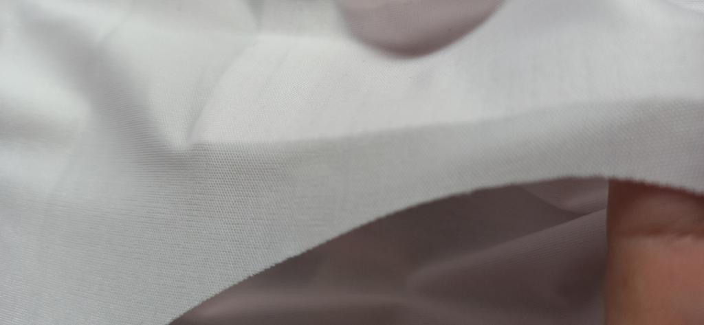 Angenehmer Stoff, dünn, man sieht nicht, was darunter ist, wenn man etwas anziehen muss, damit es nicht auffällt.