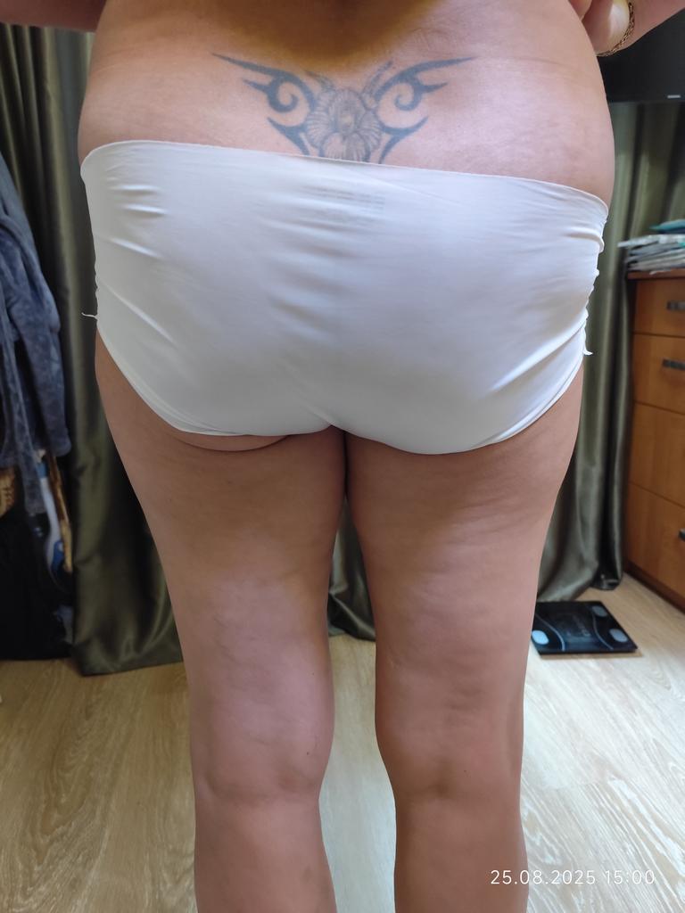 Hervorragend für Größe 50-52. Nahtlose Unterwäsche, ich habe sowohl Schwarz als auch Pink bestellt. Zart, am Körper kaum spürbar.