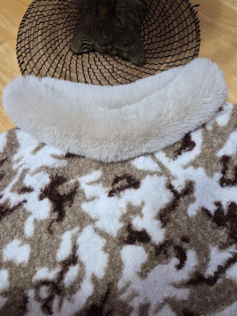 Das Poncho ist sehr gut, für kühles Wetter, aber nicht für kaltes. Es sieht schön aus, aber danach waren alle meine Sachen mit kleinen Fusseln bedeckt.