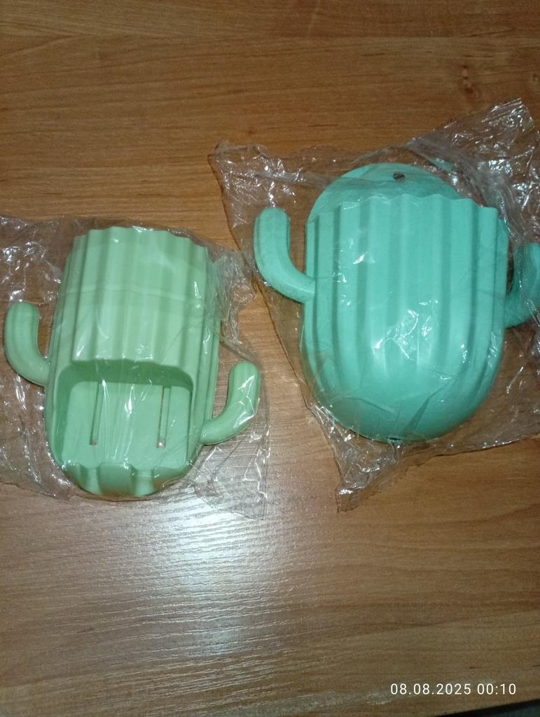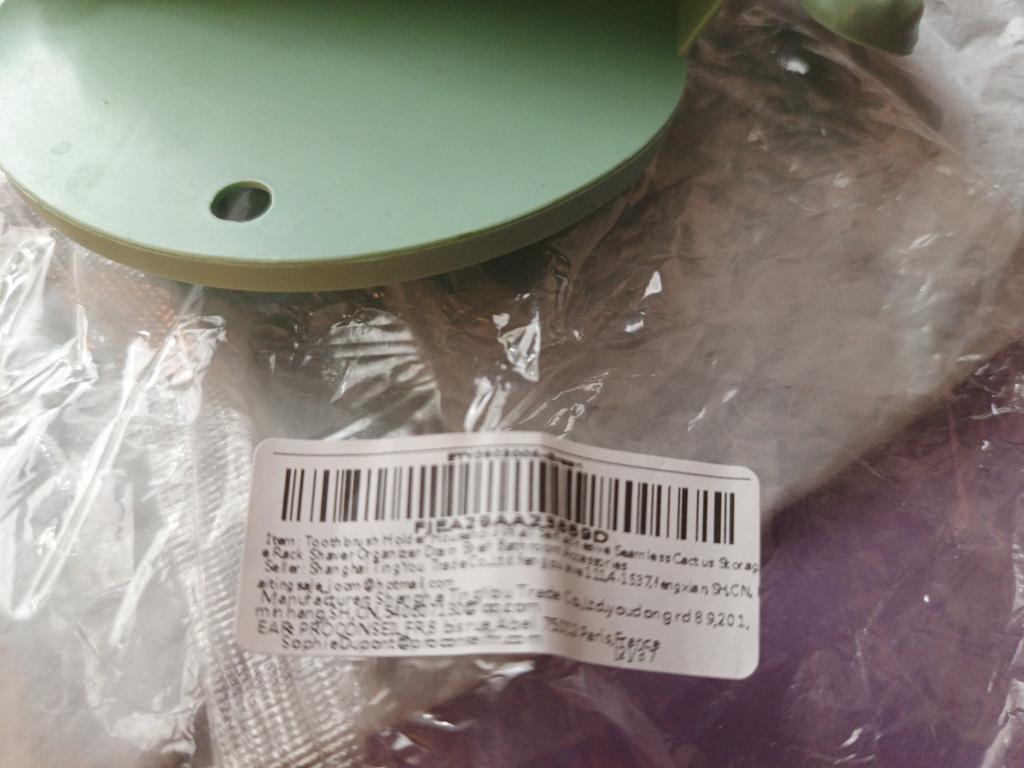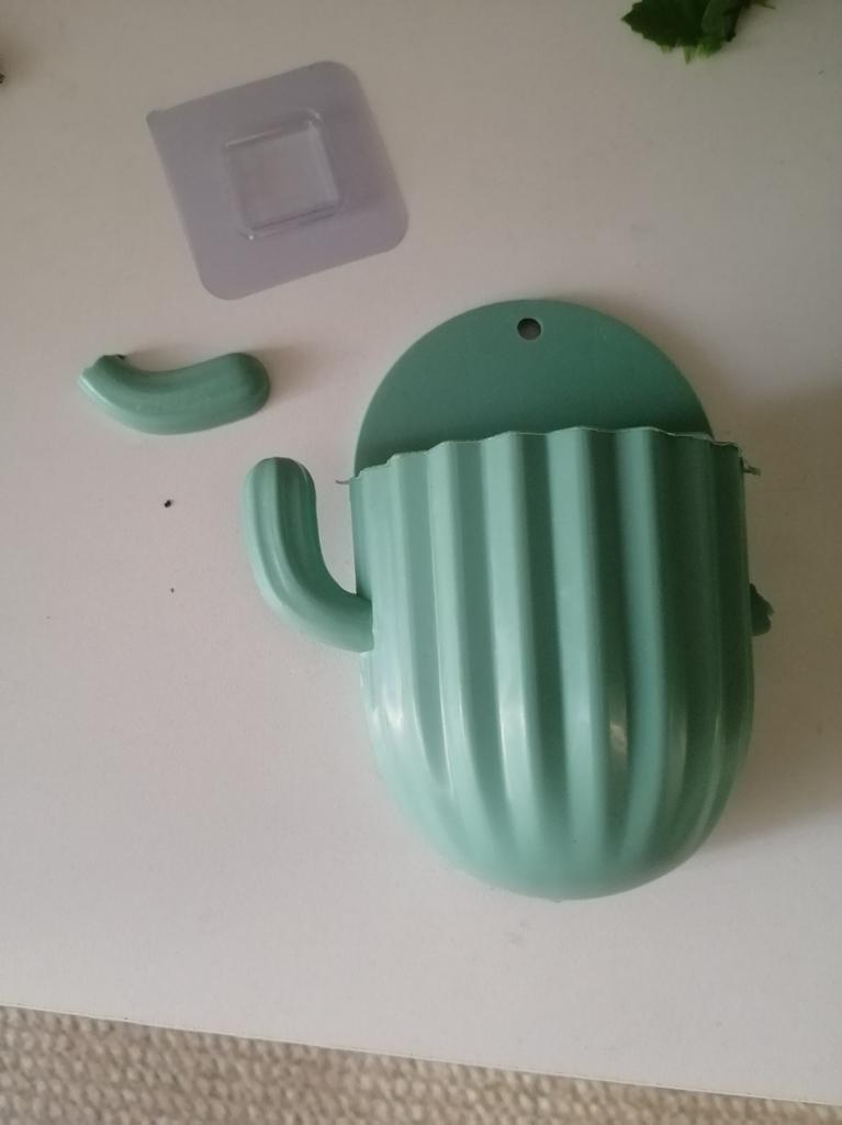 Leider kam der Zahnpastahalter kaputt an, ein Kaktusarm war abgebrochen, es gab keine Verpackung, nur eine Cellophantüte, wenn er mit Luftpolsterfolie in eine Tüte verpackt worden wäre, wäre er wahrscheinlich ganz geblieben.
