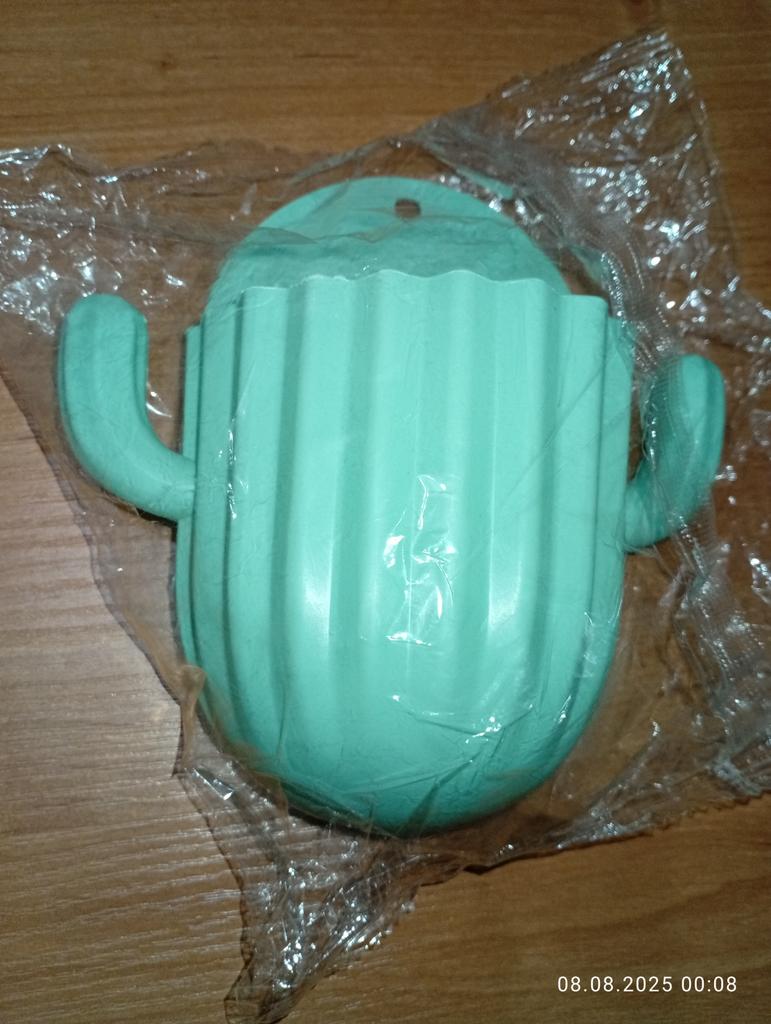 Es kam in einer anderen Farbe, aus dünnem Plastik, es hat auch ein Loch oben, aber das war nicht auf dem Bild!🫤