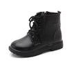 Jungenstiefel Mädchen Tide-Stiefel Schwarzes Leder Klassische Kinder-Stiefeletten Schnürung Reißverschluss Kinder Tide-Stiefel Weicher Herbst