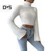 Aus Plüschmaterial gefertigt, fühlt es sich weich an und spendet Wärme in der kühleren Jahreszeit. Die einfarbige Farbe, die Glockenärmel und das hohe Kragendesign verleihen Ihrem Outfit einen Hauch von Raffinesse.