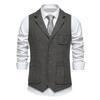 Vintage Herren Einreiher Taschen Anzugweste Tweed Stoff Jacquard Weste Formelle Revers Slim Fit Weste Lässige Businessjacke