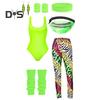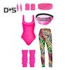 Komplettes 80er-Jahre-Kleidungsset: Dieses Set enthält einen Retro-Badeanzug, Jogging-Leggings, Beinstulpen, ein Stirnband, Armbänder, Ohrringe und ein Bauchband für den ultimativen sportlichen Look der 80er.