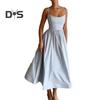 Dieses Damenkleid ist einfarbig, hat eine plissierte Taille und einen weiten Rockstil und ist ein sexy Slip-Kleid.