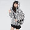 Damen Winterjacke, kurze, flauschige, warme Jacke mit Kapuze, kariert, Übergröße, lässige Outdoorjacke