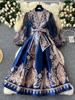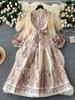 Herbst Paisley Print Bandage Wrap Abendkleid Frauen Laterne Ärmel Party Langes Kleid Weibliche Y2k Patchwork Dicken Satin Ballkleid
