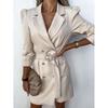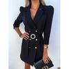 Tooxika Damen Neues OL Pendleranzug-Kragen Zweireihiges Taillen-Einfarbiges Schlankes Kleid Mit Gürtel