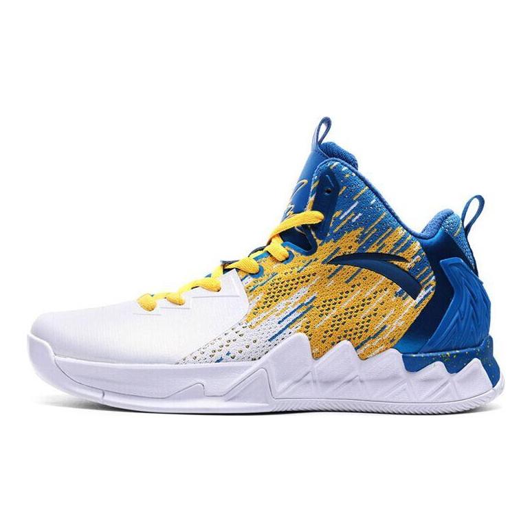 Anta KT2 Thompson 2 Strapazierfähige Rutschfeste Low-Top Basketballschuhe Herren Sneaker Weiß Blau Gelb 11721101-1