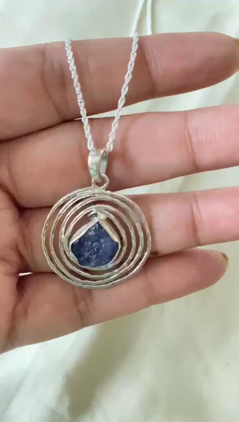 Roher Tansanit-Anhänger mit Kette, reines 925er Sterlingsilber, handgefertigter Schmuck