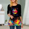 Übergröße Damen Blumenlippen-Print Rundhals lässig locker langärmliges Oberteil