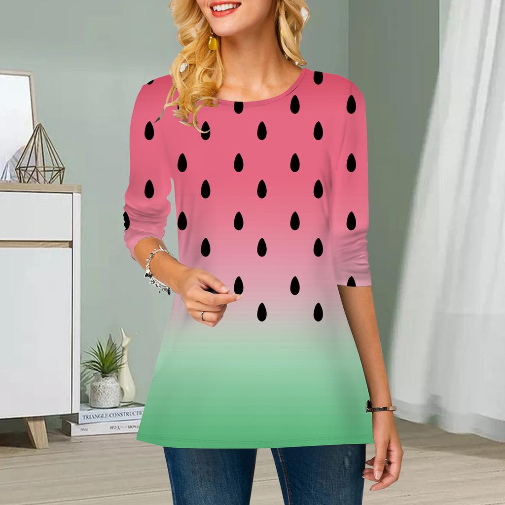 Übergröße Damen Blumen Früchte Print Rundhals Lässig Locker Langarm Oberteil