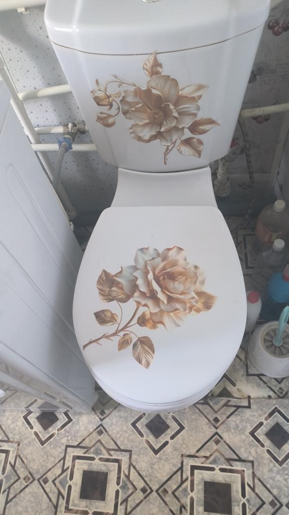 Schöner goldener Blumen-Toilettenaufkleber, Badezimmer-Toilettendeckel, dekorativer Aufkleber, wasserfest, selbstklebend