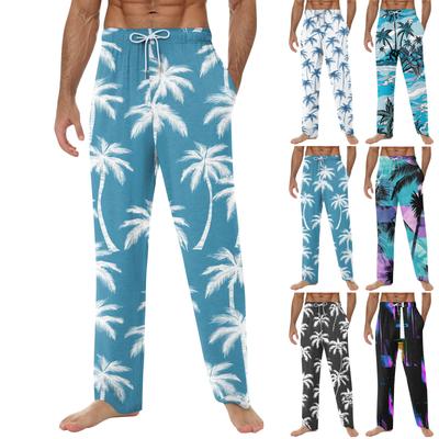 Weiche Pyjamahose für Herren mit Hawaii-Print und Kordelzug, lässige Jogginghose