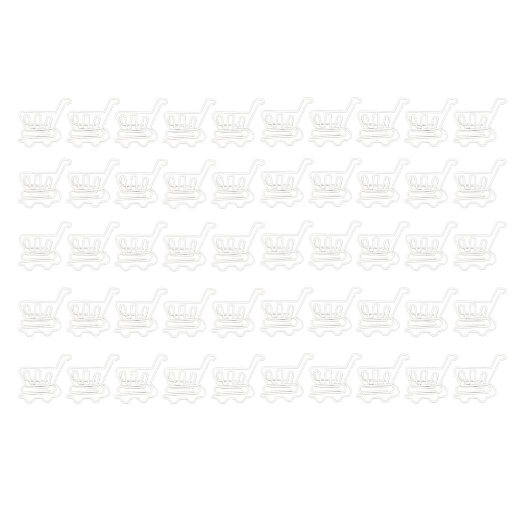 50 Stück Büroklammern, weiß, Einkaufswagen-Form, klein, stabil, Metall, Büroklammern für Büro und Zuhause, D
