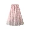 Damen Mesh Blumenrock Frühling Neu Bedruckter A-Linien Langer Rock