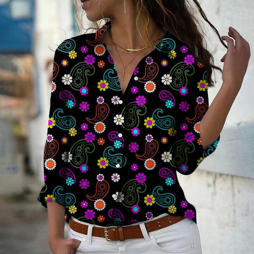 Cashew Print Frauen Bluse Frühling Herbst Femme Büro Dame Button Up Turn Down Kragen Shirts