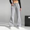Damen Hose mit hoher Taille und elastischer Taille, lässig, aktive Passform, weites Bein, lange Hose mit Taschen