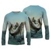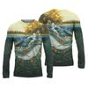 Sommer Herren Angelshirts 3D Pinting Angelbekleidung Atmungsaktives T-Shirt Langarm Outdoor Sport Rundhals Angelshirt 6XL