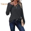 Elegantes V-Ausschnitt-Design: Werten Sie Ihren Stil auf mit dem langärmligen Damentop mit raffiniertem V-Ausschnitt und zwei schicken Knöpfen, das der Schlichtheit einen Hauch von Eleganz verleiht.