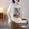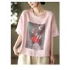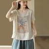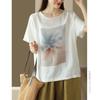 Damen Kurzarm Rundhals Bluse mit Blumendruck
